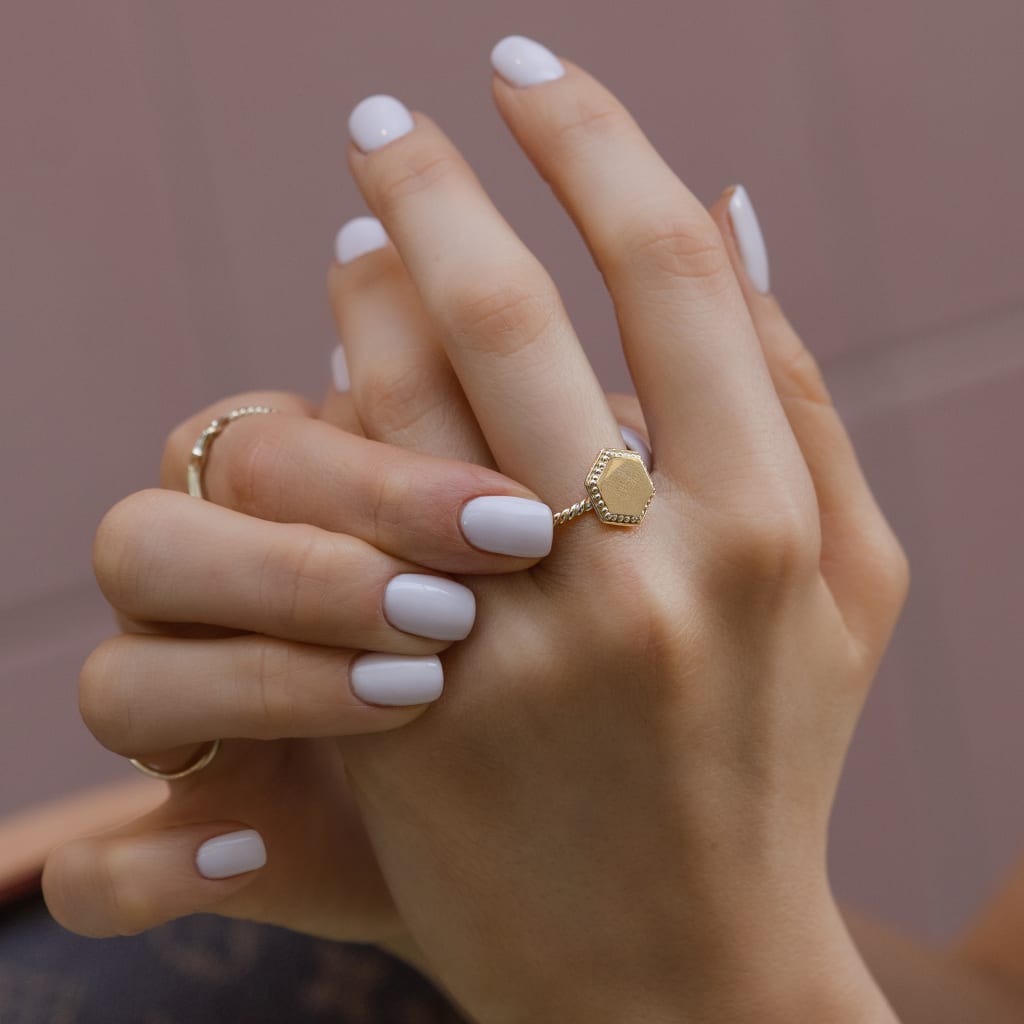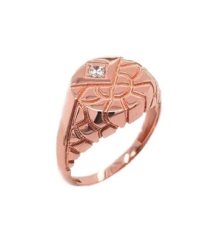 This rose gold nugget ring features an elegant form factor, which offers a sober look to the wearer. Its incredible design brings a unique fusion of traditional and contemporary art forms. Besides, you have the option to personalize the ring by engraving your initial on the plate; however, you can also choose to keep that place blank as well. The round cut diamond adds a glorious touch of shimmer, which is hard for anyone to ignore.