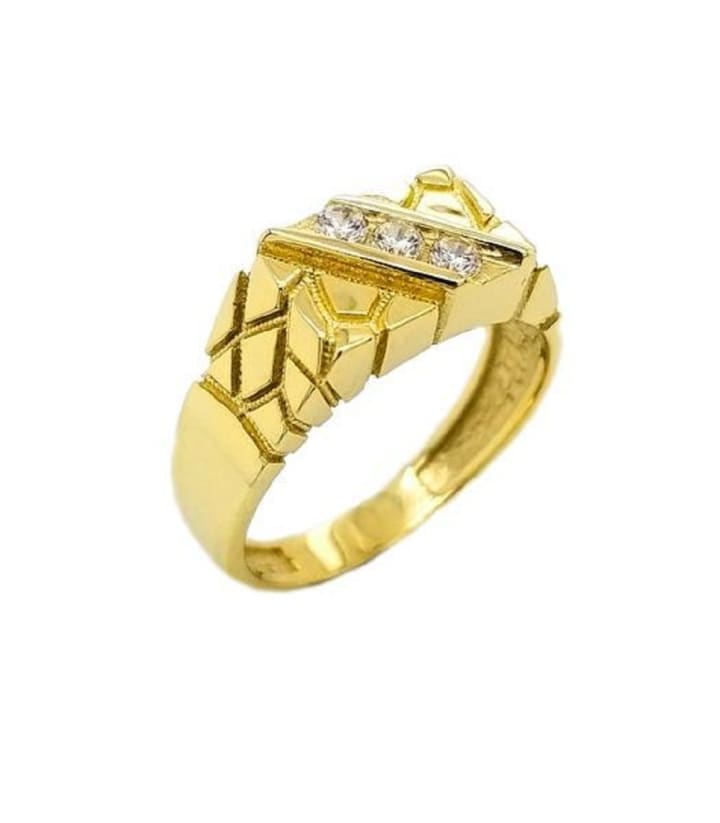 This diamond nugget ring exudes designer-inspired fineness and elegance. The sleek nugget designed ring showcases three channel-set diamonds, which produce an extraordinary amount of sparkle. Like most of the nugget jewelry pieces, this ring requires very little maintenance and one can easily use it on a day to day basis.