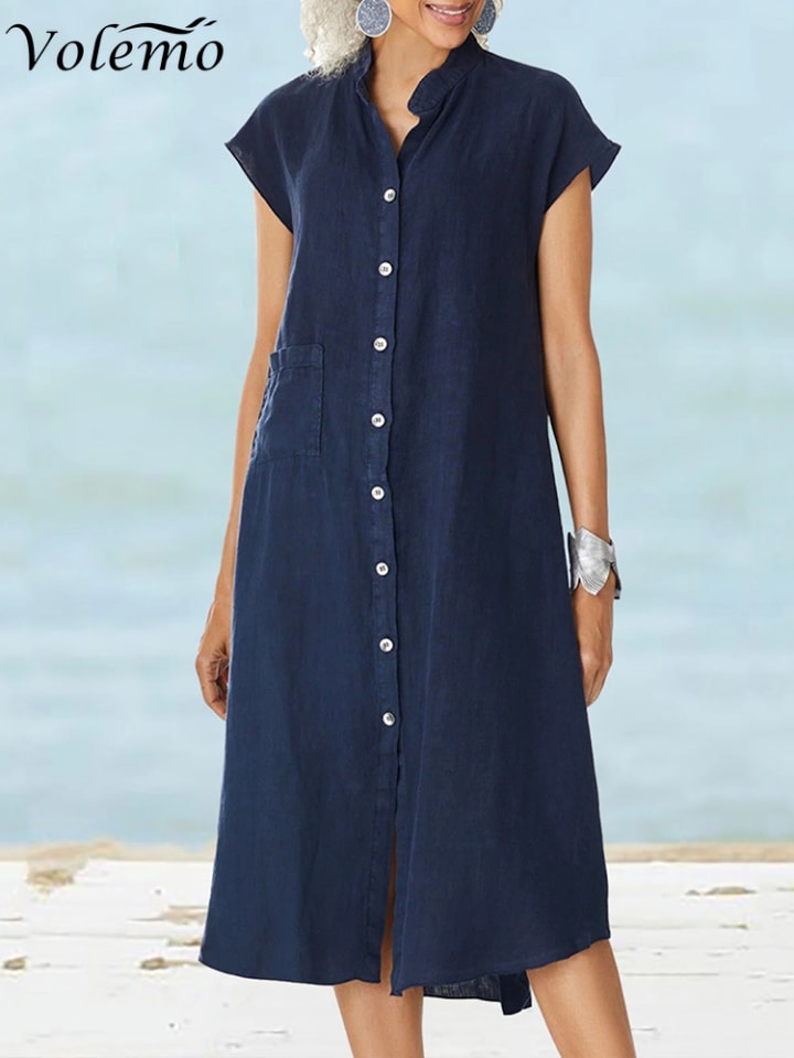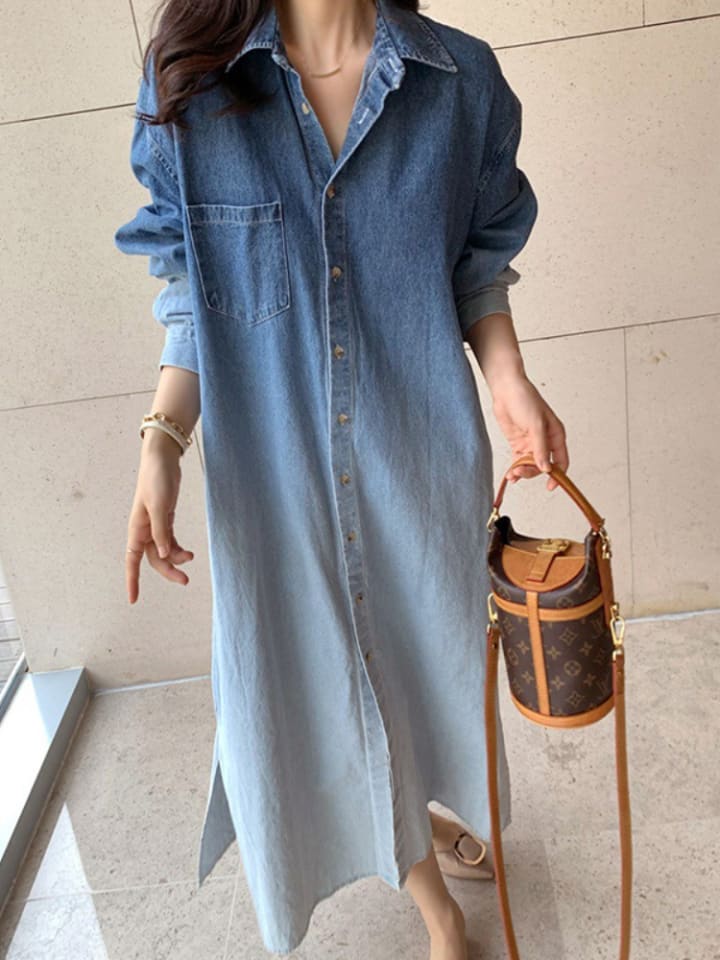 Effortlessly stylish, this denim shirt dress is a must-have for your summer collection. Its relaxed fit, button-down front, and collar give it a chic and casual appeal. Crafted from lightweight denim, it offers both comfort and versatility.