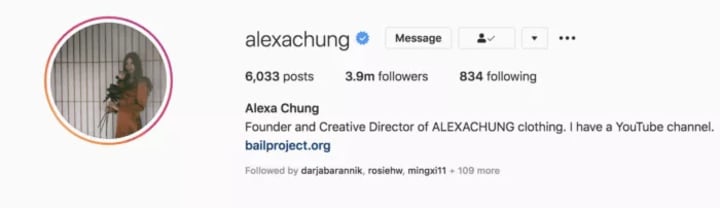 ALEXA CHUNG (3.9 MILLION FOLLOWERS)