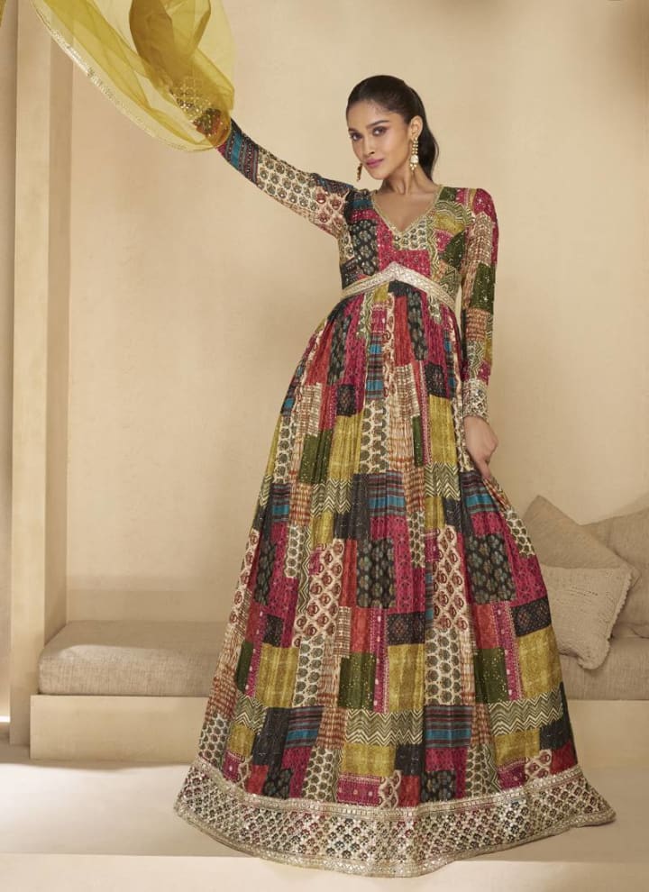Multiple shaded Anarkali dress for mehendi: - If you are the one who is not satisfied with only yellow color, then trying out multiple shades is excellent.When you are limitless and creative then why not your wardrobe? If you are not satisfied with just one you could have the spring of color pops in your favorite anarkali latest Salwar kameez.
