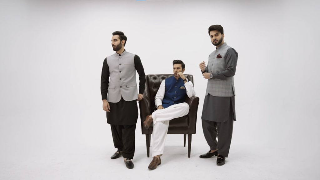 Some men also go for printed waistcoat ethnic dress or flower design eastern dress waistcoat combination which is also a great way to showcase your unique style. Furthermore, choosing to go with all black color eastern apparel option can also be option if you can match with contrasting waistcoat.