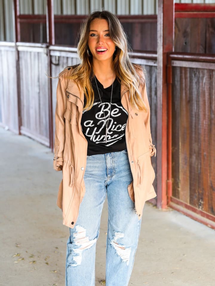 You can style it down even more with some converse or high top sneakers. Trendy women's tops with jeans create an outfit that will brighten your man's day!