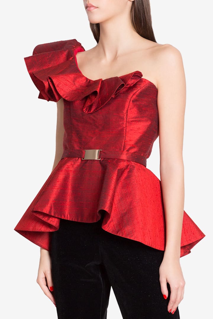 Crimson Ruffle Top