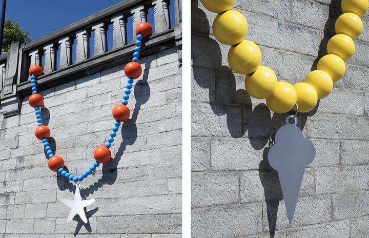 The art project "Urban Jewelry" has appeared in several cities and towns, and Liesbet Bussche has designed a whole set of summer jewelry in the small Belgian town of Namur, which reminds you of beaches, oceans, free-flying seagulls The bikini-clad girls in swimsuits, which inadvertently adds to the summer atmosphere of the small town.