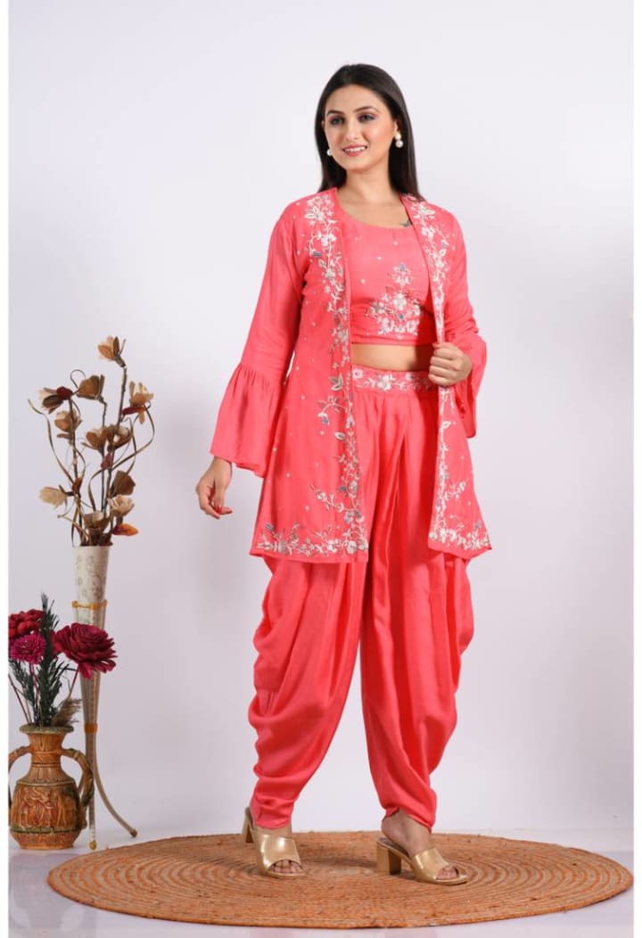 A jacket-style Punjabi suit gives you a stylish, trendy look without losing the traditional charm. The jacket adds a nice twist; it can be plain or beautifully embroidered, depending on the occasion. It looks perfect for weddings or parties when you want something elegant but different.