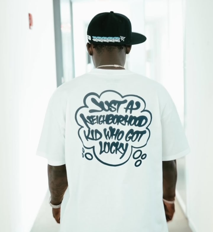 The Tees: The white Yankees joint with "Just a Neighborhood Kid Who Got Lucky" scrawled across the back? That’s the one. No crazy graphics, no overdone nonsense—just pure, unfiltered NYC arrogance with a championship ring patch on the chest like you actually earned it.