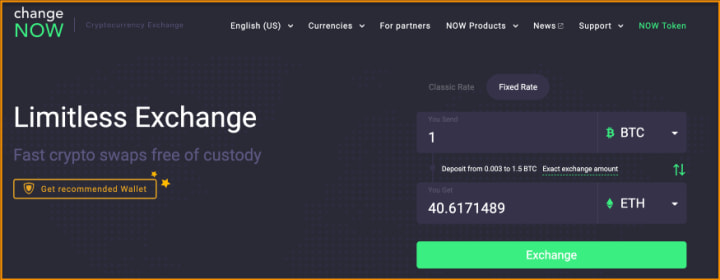ChangeNOW is another great instant cryptocurrency exchange service that supports 170+ cryptocurrencies.