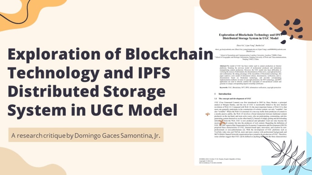 A Research Critique on the Exploration of Blockchain Technology and IPFS Distributed Storage System in UGC Model by Domingo Gaces Samontina, Jr.