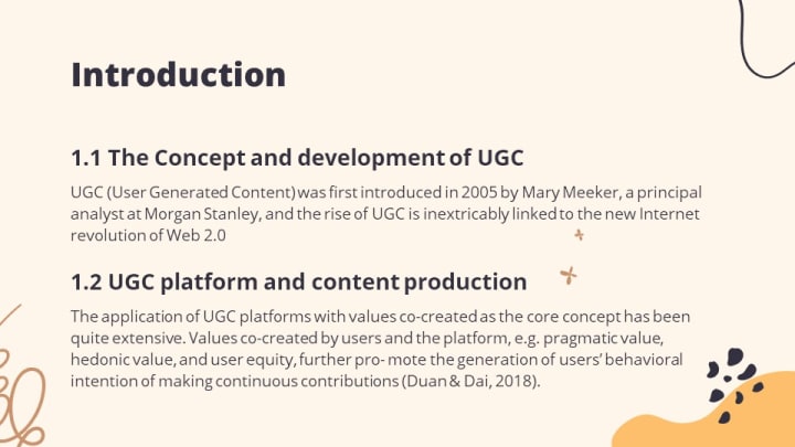 The rise of user-generated content (UGC) platforms like YouTube and TikTok has attracted creators with professional backgrounds and MCN organizations. This has led some experts to define UGC as content that is uploaded to the Internet by users, made available for viewing and sharing by non-closed collection members, and contains original opinions and ideas (Zongchuan & Qingyu, 2022).