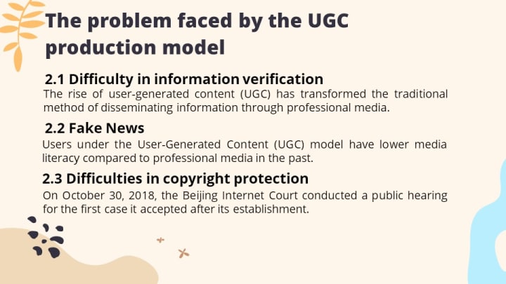 The UGC model has been widely used in content production on Internet platforms, disrupting the previous model where professional producers and institutions had a monopoly on content production. However, the UGC model also faces challenges in verifying the sources of information, dealing with the spread of false news, protecting copyrights, and providing confirmation. This paper explores a new model of information release, dissemination, verification, and re-dissemination based on blockchain technology, taking advantage of its traceability. It also provides corresponding implementation methods. To address copyright protection, the paper proposes using NFT technology and IPFS application to directly confirm the copyrights of user-produced content and generate unique corresponding digital ownership certificates.