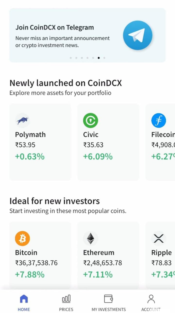 If you install CoinDCX by clicking here, you will be credited ₹100 instantly, so that you can buy any coin and other cryptocurrency or transfer it to your bank account.