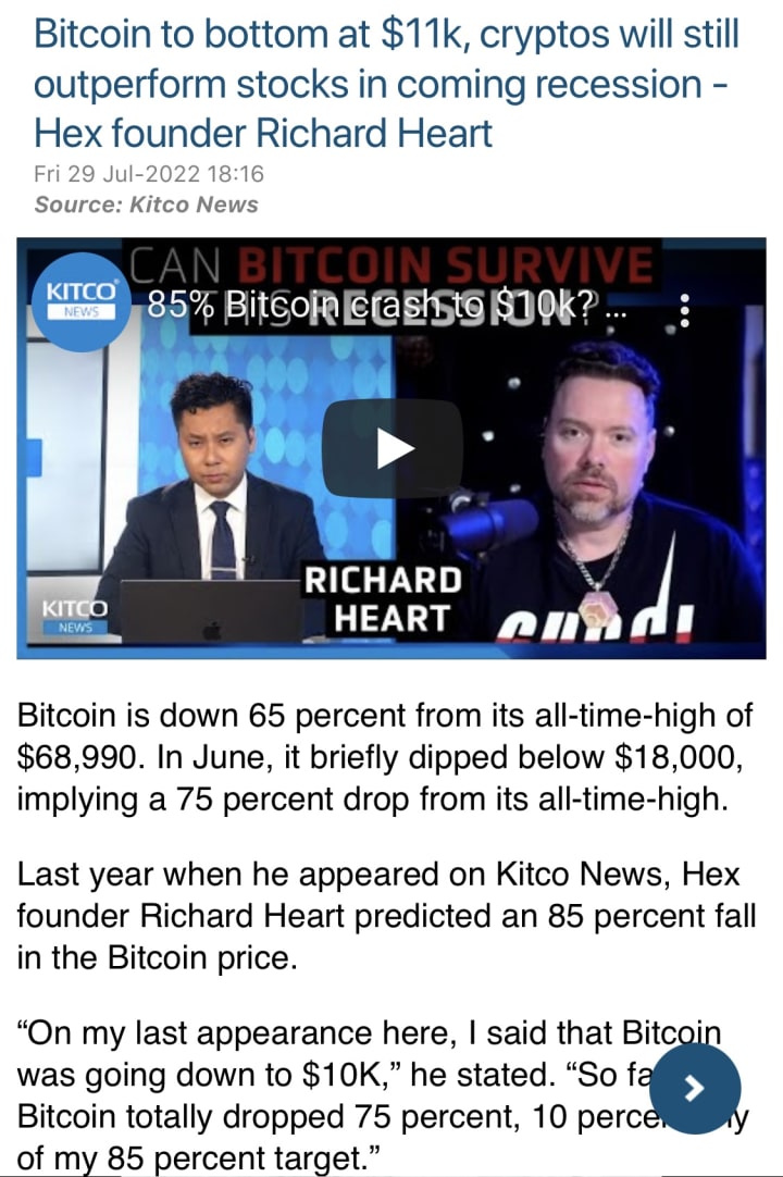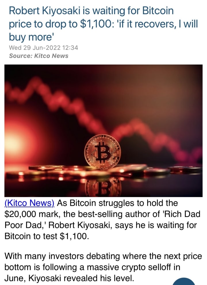 That's little consolation to long termer's that refuse to sell. There are more experienced people saying it might rebound off the the bottom of 10k but will ultimately fail completely. No one knows for sure what will happen, but for anyone still buying and holding, keep this in mind.
