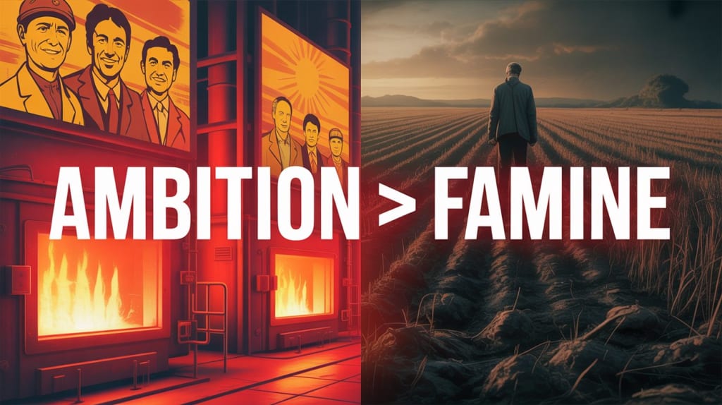 The heart of the plan lay in transforming agriculture and industry at the same time. Farmers were ordered to abandon traditional practices in favor of untested methods promoted as “scientific,” including deep plowing and dense planting, ideas influenced by Soviet agronomy that ignored local conditions. Harvests were reported as miraculous, not because fields were overflowing, but because officials feared punishment if they told the truth. At the same time, steel became a national obsession. Backyard furnaces sprang up across China, where peasants melted tools, pots, and household metal in crude fires to meet impossible quotas. The result was unusable pig iron, while farms were left without equipment and workers were pulled from the fields at the most critical moments of the growing season.