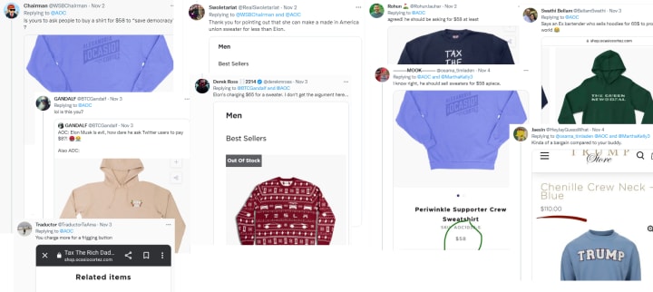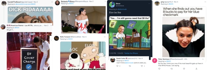 8 seems to be the magic number this week on Twitter - 8, blue check marks, and fanboys rallying for the new troll king. Every content creator had a dig at the new CEO, but for followers of AOC, there were an unfortunate number of sweaters. So many goddamned sweaters.