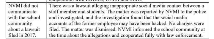 Ryan claims in his letter to the LACCD that “the matter was reported by NVMI to the police and investigated,” but the plaintiffs told a different story. According to the lawsuit, “NVMI was largely disinterested and unconcerned” when parents brought their concerns to the school’s attention. These parents say that “the school even went so far as to say there was no ‘evidence’ of sex abuse or inappropriate touching by Tschappat; so…it had no obligation to report the conduct to the authorities.” This would violate laws that require mandated reporting of these types of suspicions.