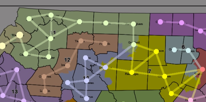 The fact that the 10th district has two partial counties in a line extending outwards, and that the 12th district is only connected by a partial county, are also major red flags. Whole counties that are only connected in a linear fashion are a warning sign; when districts connect a linear chain of pieces involving partial counties in the middle, bypassing the rest of the closer county, this is clear proof of gerrymandering.