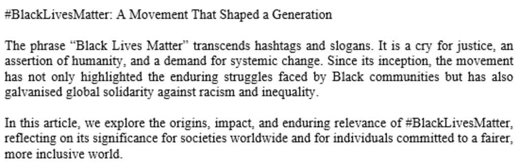 #BlackLivesMatter is more than a moment in history; it is a movement that continues to inspire action and hope. It challenges societies to confront uncomfortable truths, reimagine justice, and build a future where equality is not just an ideal but a reality.