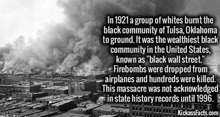 My older relatives (all "white"), who were all born in Oklahoma, and who were all within fifteen-to twenty-five years old, at the time of the destruction of Greenwood, were quite silent about the massacre. When I was about eight years old, when there were "race riots" in the US (in response to the murder of Dr King), I had heard about the "Tulsa Race Riot", and I asked my older relatives about it. Their response (and you might not be able to believe this): "Well, you know how THOSE PEOPLE are..." I knew they were not telling me the truth, and that someday I would learn the truth. I have finally learned the truth, and I fully support all the efforts that Tulsa and Oklahoma have made, to make reparations to the victims of this senseless mass-murder.