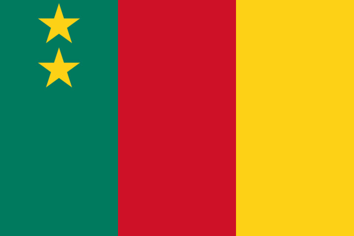The two became the Federal Republic of Cameroon and the flag acquired two stars on the green strip to represent the two States.