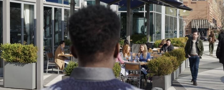 Julian's anger festers on for a while and he even fantasizes about confronting the lady when he comes across her sitting outside with her friends(Jessica Bishop and Paige Herschell). Seeing her unbothered and enjoying her time angered him even more. He had played out multiple versions of confronting her with varying outcomes which he never won. He decidedly walked away doing nothing. This was such a realistic and relatable situation because sometimes people consider what could have been done after a situation to construct their feelings accurately.