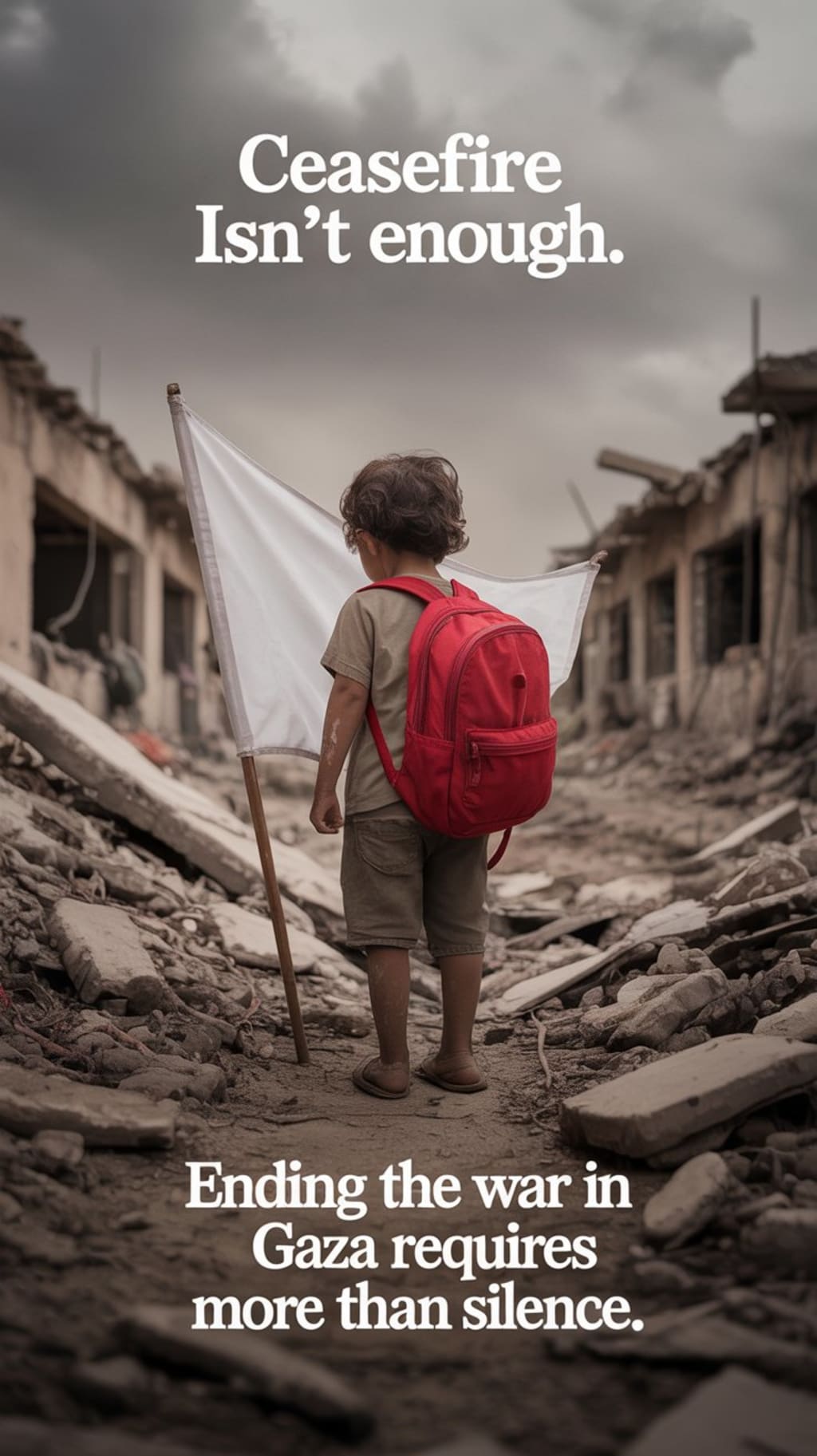 Will we say we looked away? That we waited for governments to act? Or that we raised our voices and refused to let another child become rubble?