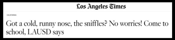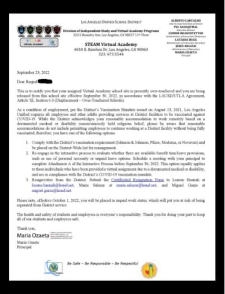 With the LAUSD having abandoned most efforts to protect students and families who are medically fragile during the ongoing COVID crisis, including once again encouraging children to go to school even when they are sick, the vaccine requirement is the last remaining line of defense. While Villalta has the right to reject the COVID vaccine on religious grounds, this does not override the rights of children to attend school in a safe environment. Anyone with a true “passion for student success” would understand that.