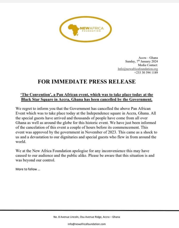 Government’s statement on the cancellation of ‘The Convention’ on Sunday, January 7, 2024, at the Black Star Square.