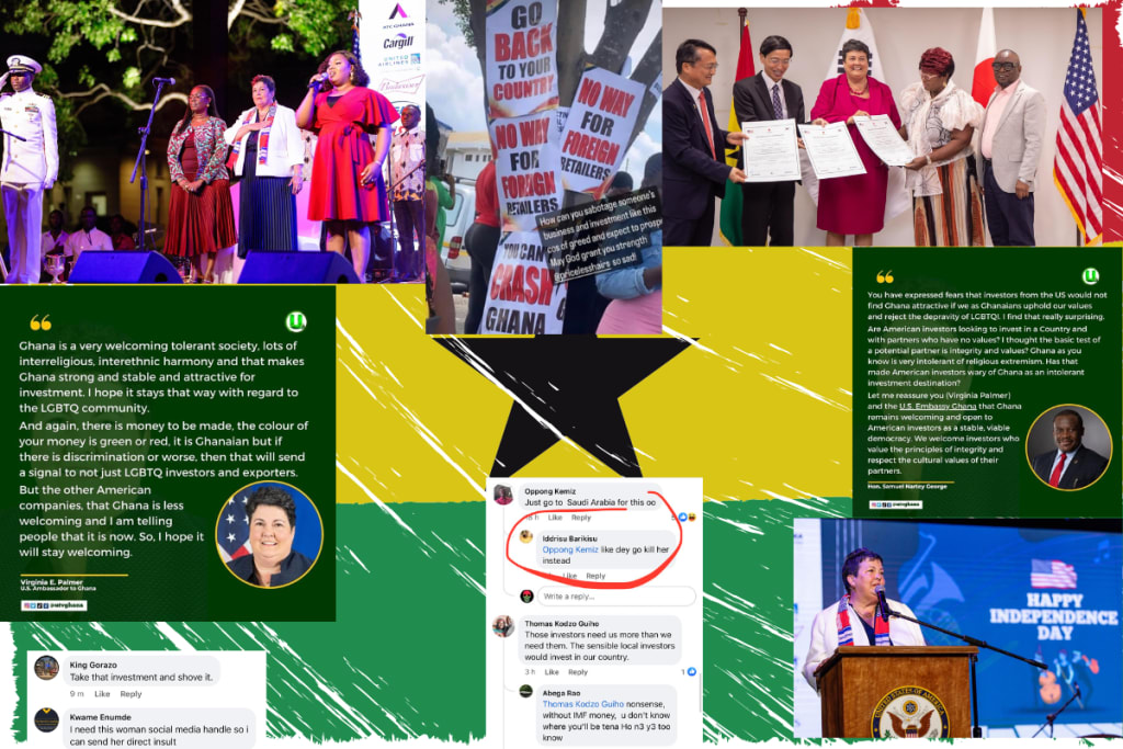 Hundreds of Ghanians took to UTV News Ghana's Facebook page to post death threats to the Ambassador. Most called her a pig, insulted her looks, called her double chinned. Some insults which should have been deleted were just hidden.