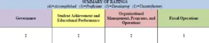 During the renewal process, NVMI was rated as “two (Developing)” in Governance. This development does not seem to have progressed very far since the charter school was saved by LACOE. In the past several months Dr. Mark Ryan, the school’s “Superintendent” has careened widely between schemes to keep its doors open.