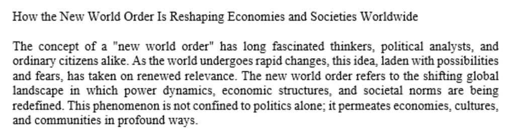 How the New World Order Is Reshaping Economies and Societies Worldwide