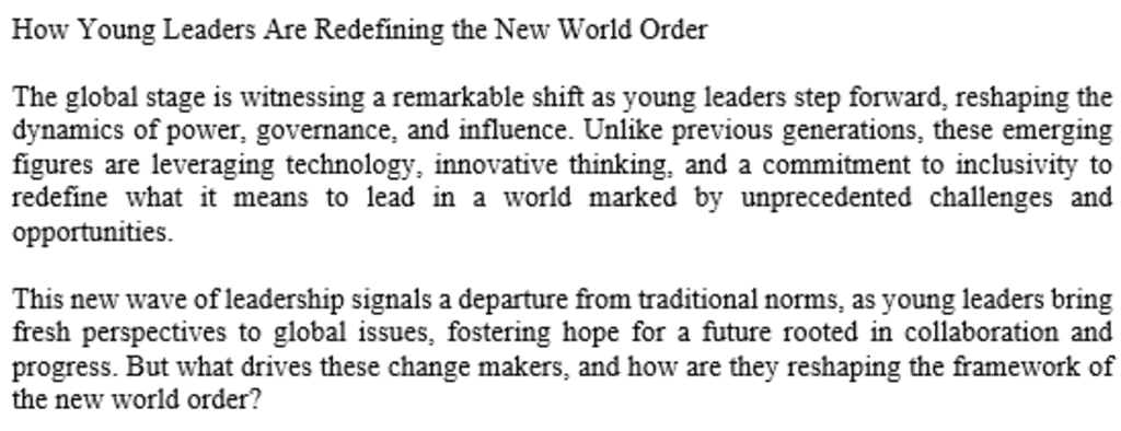 This new wave of leadership signals a departure from traditional norms, as young leaders bring fresh perspectives to global issues, fostering hope for a future rooted in collaboration and progress. But what drives these change makers, and how are they reshaping the framework of the new world order?