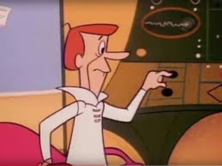 What did George do for a living, you may ask? George Jetson worked three days each week for four hours each day. Great, but what did he do to earn his living? It was George’s job to push a button IF NECESSARY. In the three to four years the show aired, to my recollection, George only was required to push the button two times, and to my childish mind it was extremely exciting, especially since in one of the two episodes in which he needed to push the button, his button pushing finger was injured.