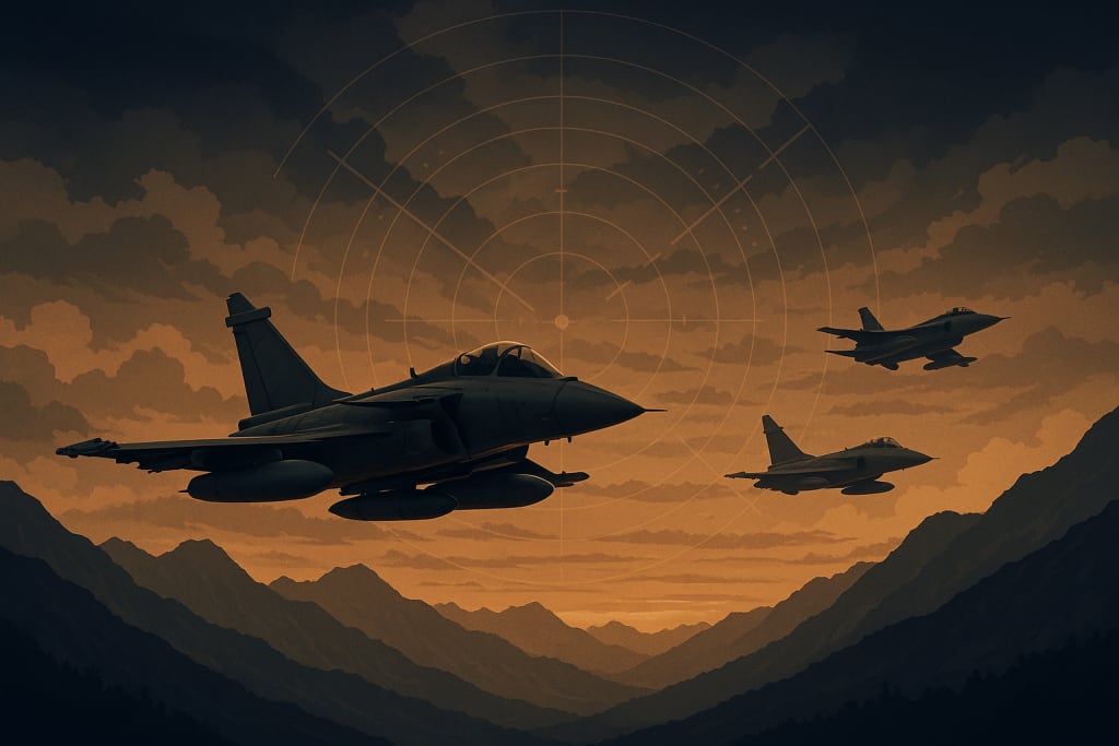 Indian Rafale jets retreat over IIOJK after Pakistan Air Force's swift response, highlighting rising border tensions and military readiness.