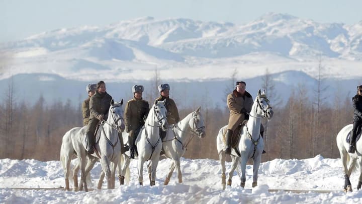 Her horses are in prime condition and are sometimes used by her brother for journeys up Mount Paektu, also known as North Korea's most sacred mountain on a white horse.
