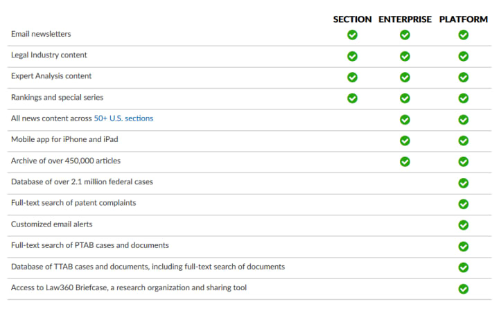 Law360 isn’t your standard firm of lawyers. They position themselves as industry specific media and journalism focused legal advisory, however they have more to offer to their wealthy clients than just legal reporting. Law360 offers their customers one of the most expensive “email newsletters” on planet Earth. The newsletter subscription client contracts that I had downloaded were costing users between $1400.00 and $18,000. The lower priced contracts were receiving basic packages but the more pricey contracts allow their customer access to some of the largest legal databases in the US.
