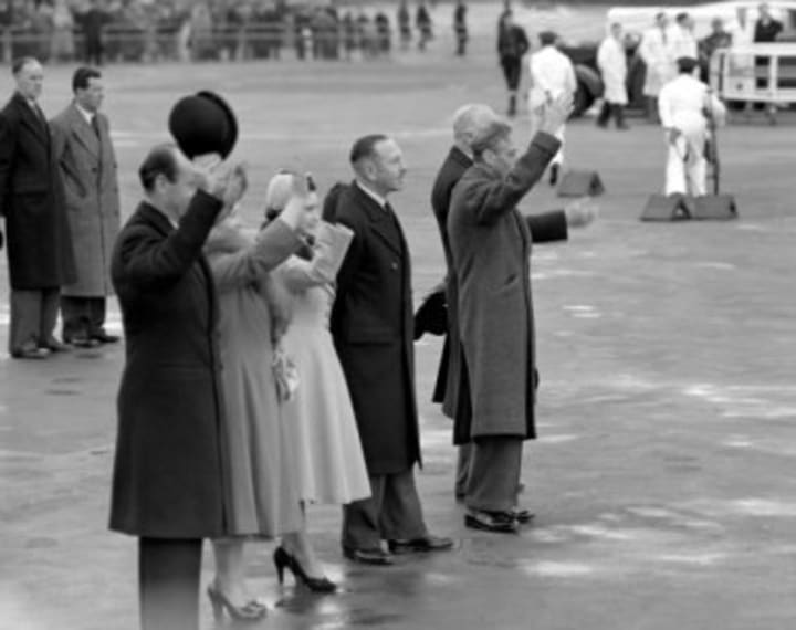 Princess Elizabeth and Prince Philip left from London Airport, 31st January, 1952, for their tour of Australia via Kenya. The King saw his daughter off. It was the last time that father and daughter saw each other. Six days later, on the 6th February, 1952, the King died in his bed at Sandringham House, Norfolk. His daughter, who was now Queen Elizabeth II, came straight home to Britain from Kenya.