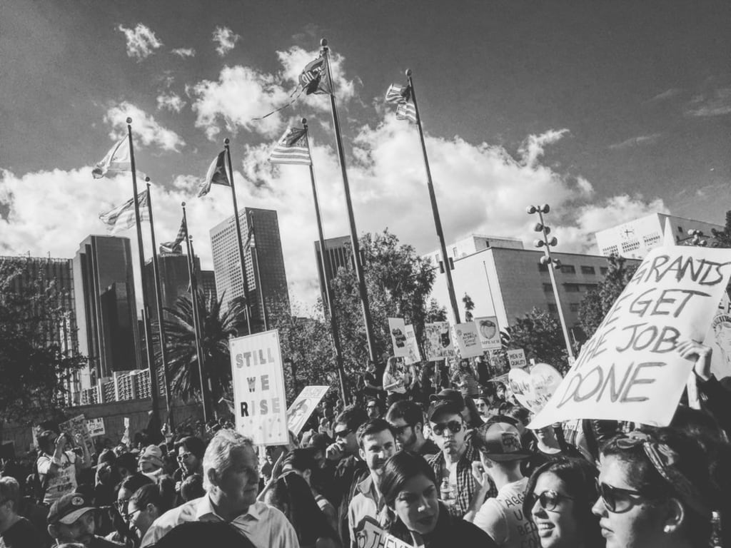 I’m drinking champagne alone in the Broadway Bar on the night of the Women’s March on Washington. I just left the Orpheum, where the Literary Death Match poets and readers declared hopes for daughters and tribute to mothers—and you could feel as much in the audience as on the streets of Downtown LA tonight that we’re all still flying high, giddy with celebration even though we know there’s a long four years ahead. But we’re not ready to let hope fade yet—people are still carrying their signs, and they’re wearing their homemade pussy hats, and I still haven’t changed my clothes.