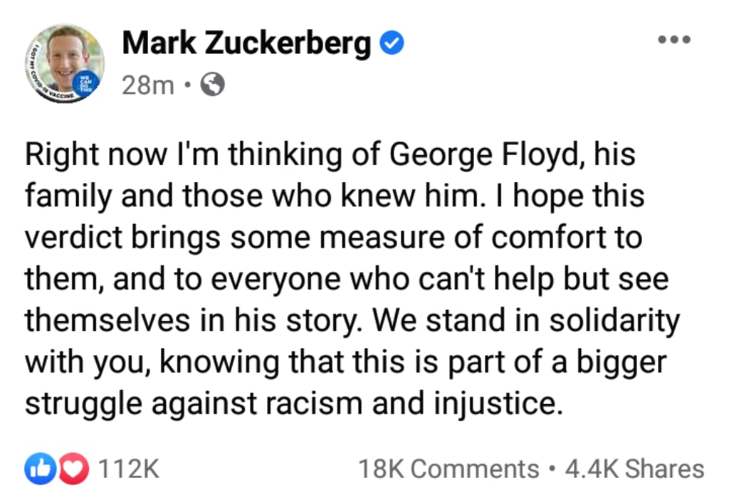 Mark Zuckerber: Right now i'm thinking of George Floyd