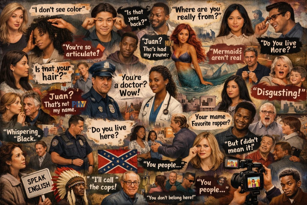 A collaboration or things said to me, done to me; and things I’ve witnessed and stories of many shared with me. Micro aggression is a statement, action, or incident regarded as an instance of indirect, subtle, or unintentional discrimination against members of a marginalized group such as a racial or ethnic minority. (the dictionary)