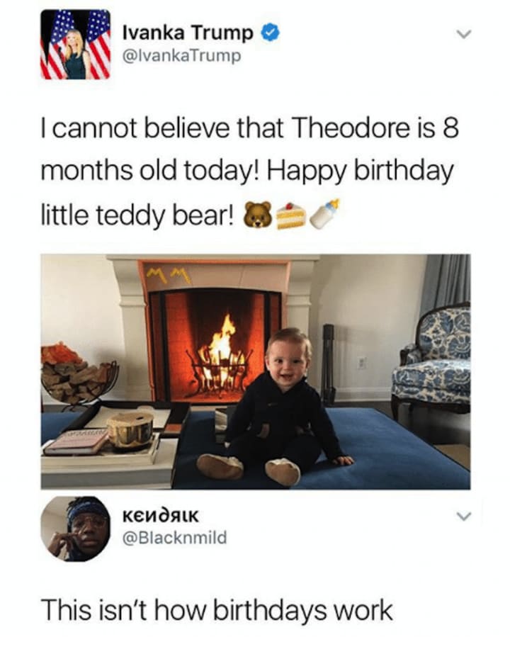 One of the most viral moments in Twitter history of 2017 was discovering one of Ivanka's old tweets feating her son, Theodore. We're not sure why it took so long for someone to reveal the stupidity of the remark (that can still be seen on Twitter because she has yet to remove the embarrassing tweet) but we're certainly glad someone in the internet world made this discovery.