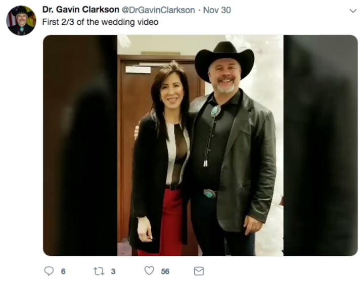 The details, however, make the story even worse! Gavin Clarkson is a resident of New Mexico, and he is not a man without an interesting past. He had been an who had been a former finance professor at New Mexico State University (he's currently suing the institution to get his job back), a former deputy assistant secretary in the Trump Administration, and most recently, an unsuccessful candidate to be New Mexico's Secretary of State (losing an election-night "squeaker"—not—by 20 points to his Democratic opponent). He and his then-fiancée (who is a resident in our nation's capitol—Washington, DC) made the requisite visit to the District of Columbia Marriage Bureau before their nuptials to get their wedding license taken care of.
