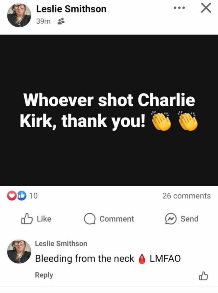 This. All of this. I don't identify as Republican or Democrat. I believe both are far too radical and hypocritical. I do believe in certain ideas from both sides and i think if they actively worked together instead of running against and slandering each other, the world could truly become a much better and safer place for everyone. I have seen conservatives saying they've stayed quiet for too long and it's time to return fire. I've seen democrats partying in the street singing about who was next. People even left comments on his widows social media pages mocking and laughing. At the end of the day, a human life was lost and in the most brutal way. In front of a crowd of people. Filmed and placed online for everyone to see and make memes of etc... and if that doesn't make you sick to your stomach, something is wrong. We don't have to agree on everything in the world to be civil human beings. I think social media has really destroyed peoples sense of human connection. They think it's funny and cool to talk so horribly to each other and it's so weird. I will always mourn a life lost. Even if the person is a stranger. Even if I don't agree with them. Great piece. Truly.