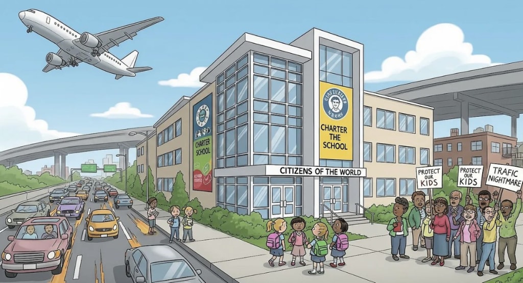 Citizens of the World Charter Schools skirt safety laws, endangering students and straining neighborhoods with a project next to a freeway.