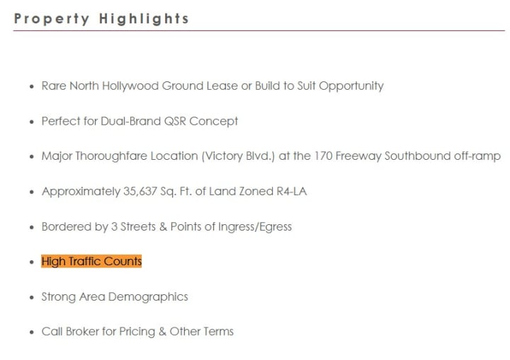 State law also specifies that new school sites “shall not be adjacent to a road or freeway that any site-related traffic and sound level studies have determined will have safety problems or sound levels which adversely affect the educational program.” In most cases, SB-352 prohibits “a school site that is within 500 feet from the edge of the closest traffic lane of a freeway or other busy traffic corridor.” Yet the land CWC has purchased at 12409 Victory Boulevard in North Hollywood was advertised by the real estate agent as being a “Major Thoroughfare Location (Victory Blvd.) at the 170 Freeway Southbound off-ramp.” There will be nothing between the charter school and exiting cars and the facility will be less than 500 feet from the closest traffic lane on that congested freeway.