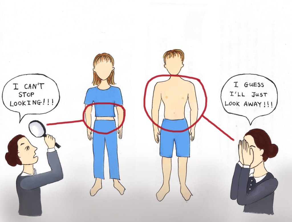 This excuse also sustains rape culture, which plays into the 'you're asking for it' excuse. This protects the assaulter by using what a student is wearing as an excuse for someone else's actions against them. No woman asks to be raped by somebody! No matter what their wearing, they aren't asking for somebody to assault them and if somebody thinks they are, there's something wrong with them. My clothes isn't me accepting your advances! Many also argue that school dress codes can be unfairly enforced based on body type, where more developed women or heavier women are punished more frequently compared to less developed or thinner women.