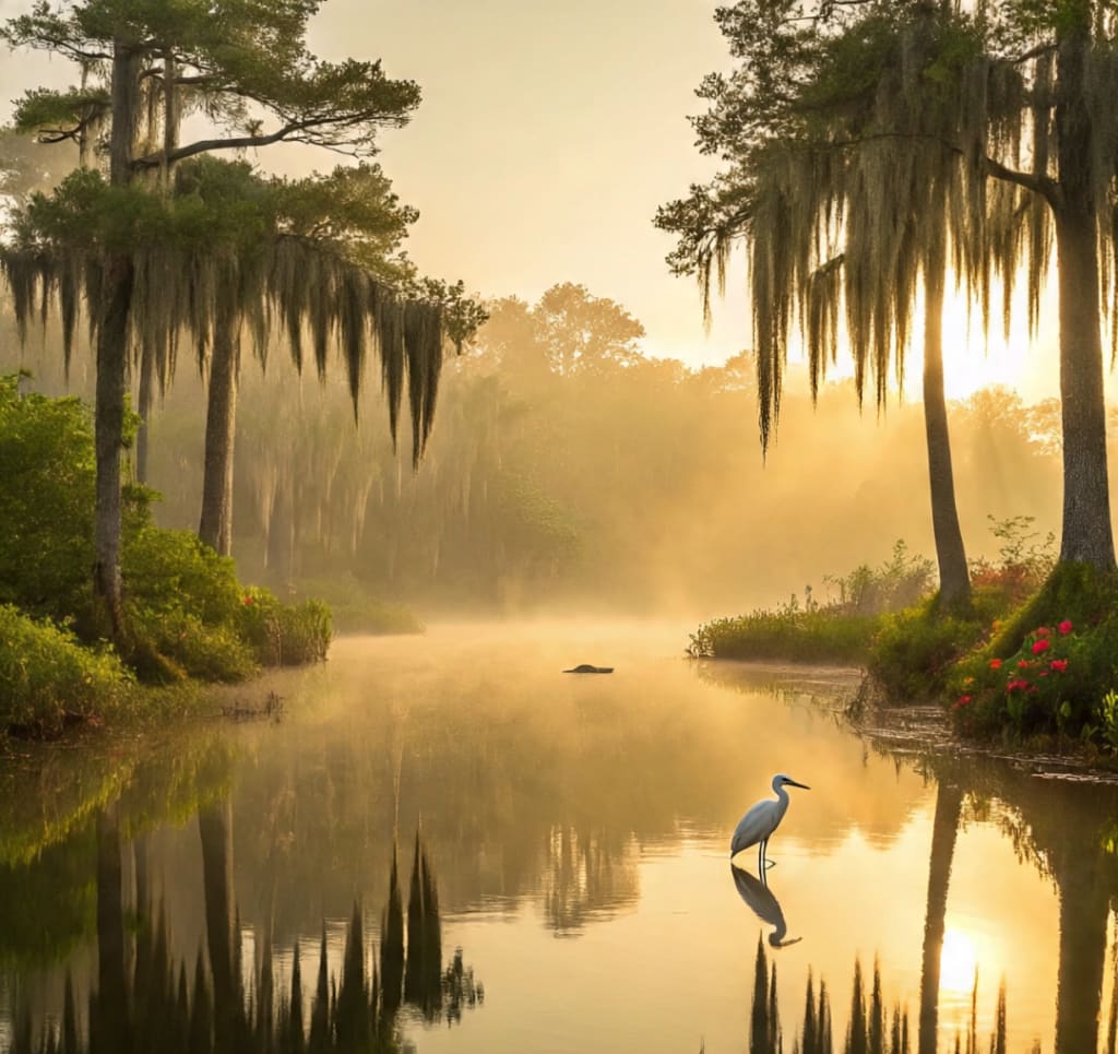 It was just after dawn when I first set foot into Cypress Hollow Swamp, a protected wetland in the southeastern United States. The air was thick with the earthy scent of damp leaves and still water. Spanish moss draped over towering cypress trees like silver lace, swaying gently in the morning breeze. Mist curled along the water’s surface, glowing golden in the rising sun. It was quiet—but not silent. A symphony of birds, frogs, and insects welcomed the day.