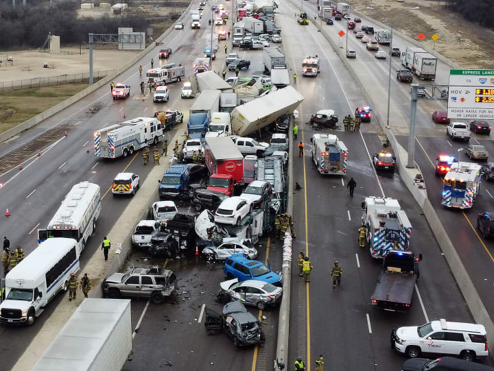 On February 11th we saw how there was no need for anyone else to mess with Texas. We were our own worst enemy. You see that day, we lost 6 lives due to negligence on the part of our government. Roads and highways weren't treated and it cost lives on Interstate 35W when there was a 133 vehicle pileup. The highway was a skating rink and no one could stop. Video showed cars and 18 wheelers one by one slamming into others.