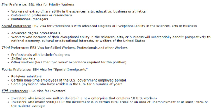 EB-1to EB-5 is the mainstream because many of us don’t have a relationship with the United States. EB represents employment-based, which means the immigration category is based on employment relationships.