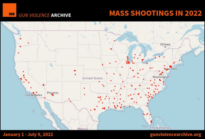The United States is plagued by Mass shootings every year, the American proverb "There are two constants in life, The sun, and taxes" should really be "There are three constants in life, The Sun, Taxes, and mass shootings". America has more mass shootings a year than every other country in the world has had in the past 100 years.